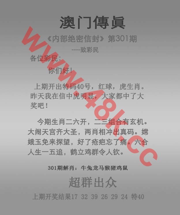 | 301期: ⑥肖 | 狗牛兔猴羊猪 | ????中 |